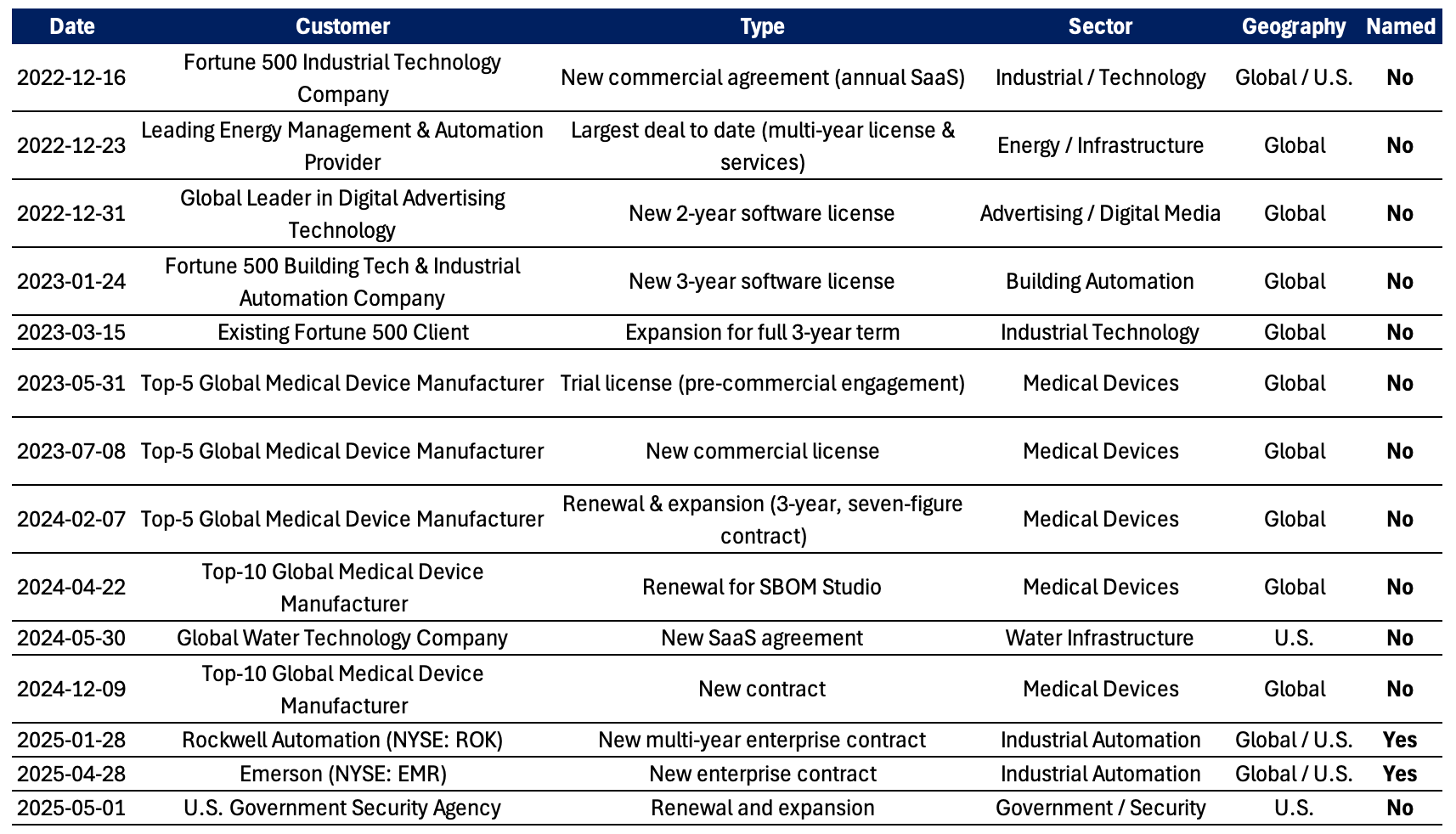 The company does a good job of announcing wins. Below shows the progression dating back to December 2022.